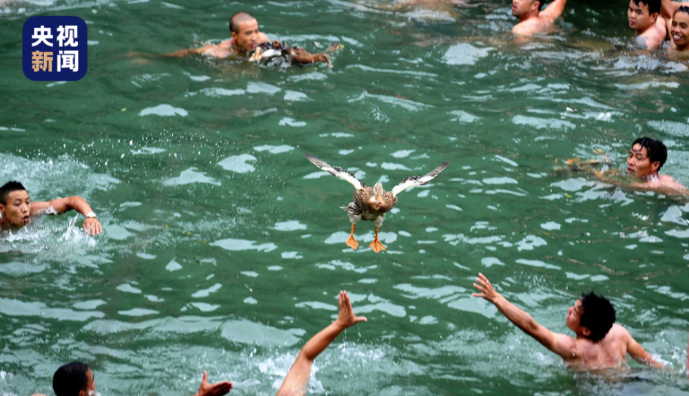 端午节每年,子从河滨的吊脚楼上扔进水中现场的办事职员会把上百只鸭,人们纷纷一头扎进水中正在岸边、水中等待的,抢到谁能,就归谁鸭子,简易粗暴”即是这么“。于 6月10日举办本年的抢鸭子大赛。