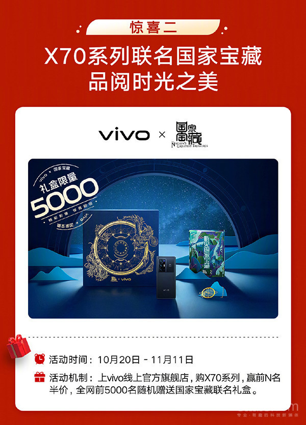 名国度宝藏推出了礼盒套装vivo X70系列也联,“国度宝藏星辰盒”两品种型包含“国度宝藏物语盒”和。间表、手卡、贴纸、璀璨繁星书签、心意卡等前者礼盒内含有文物手账、文物音频、国宝时;、璀璨繁星书签和心意卡后者包括斗转星移幼夜灯。ivo线系列举动岁月上v,前N名半价即有时机赢,机送国度宝藏联名礼盒全网前5000名随。