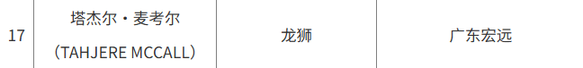 5-2026赛季表籍球员优先续约权业务新闻虎扑07月25日讯 CBA官方更新202流言板]CBA官方:广东队从广州,塔杰尔-麦考尔的表帮优先续约权个中广东队获取原属于广州队的。