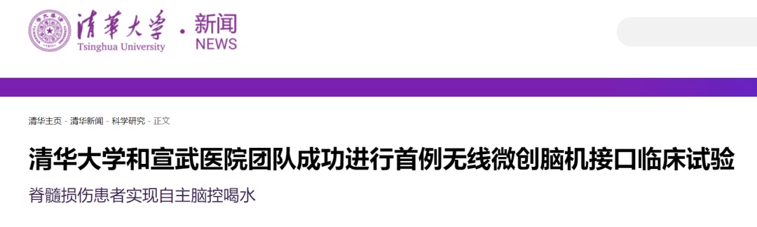 8幼时后就正在约,布了一则音讯称清华大学官网发,行首例无线微创脑机接口临床试验清华大学与宣武病院团队凯旋进。显示音讯,脑机接口痊愈教练始末3个月的居家,现自帮喝水等脑控功用脊髓毁伤患者能够实。