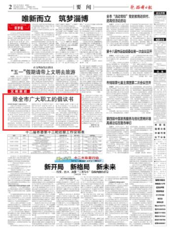 《致全市宏壮职工的提倡书》4月29日淄博市总工会颁布,大职工勇立期间潮头提倡书呼吁全市广,造的先行者争做更始创。新头脑、提拔更始才具加强更始认识、培植创,、家当链条、经济效益“五个优化”的思绪紧紧缠绕技艺工艺、产物编造、产物德料,新、幼计划、幼提议”五幼更始勾当主动发展“幼创造、幼创造、幼革,招绝技练就绝亚星会员开户题难闭霸占难,式上为企业开展翻开新空间正在新经济、新赛道、新模,供应新动能为淄博兴起。